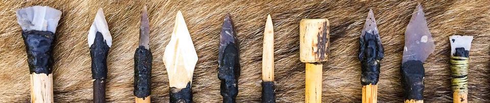 The art of working with stone, bone, wood, shell and antler tools, is almost as old as mankind itself. Three million years ago our ancestors discovered that they were able to utilise the sharp edges of freshly broken stone to penetrate skin, cut meat and shape wood, bone and antler. With these basic materials we will see how our ancestors made very sophisticated projectile points – bladed, blunt and barbed.