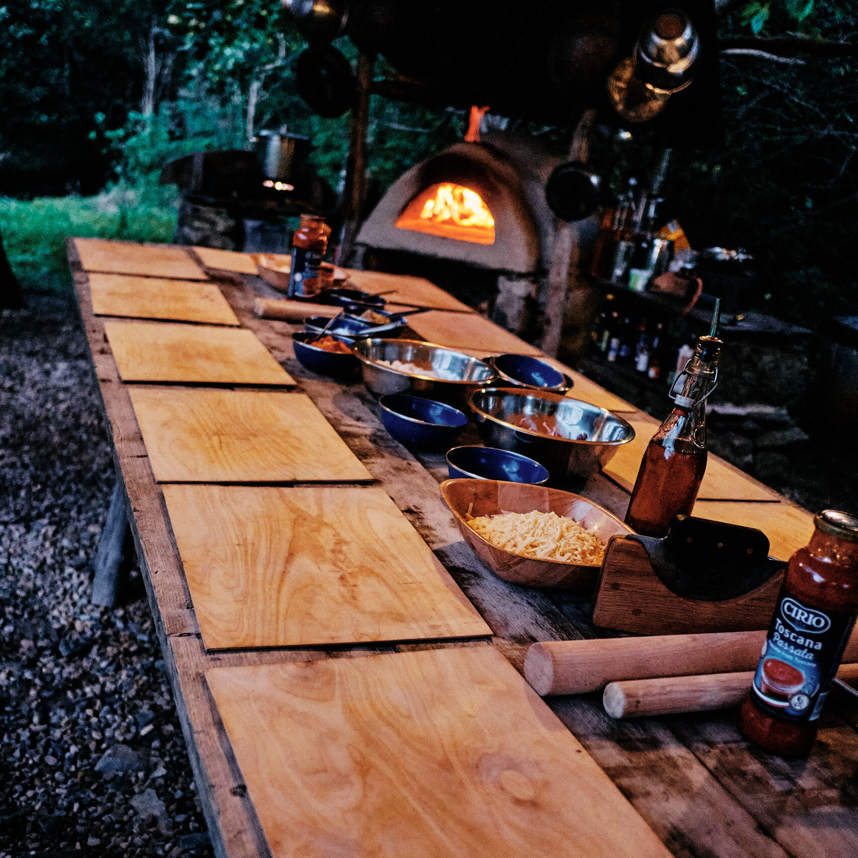 Saturday night, 5pm – 10am. After a day of crafting you will be able to relax and enjoy our hand-built, wood-fired sauna with a spring-water fed plunge pool or a cold shower (depending on time of year). We will then have the cob oven ready for you to build your own pizza with a variety of toppings, before sitting around the fire or finding your own secluded spot for the rest of the evening. Simple breakfast such as cereal and eggs, along with tea and coffee, will be available for you too make yourself in our camp kitchen on the Sunday morning.